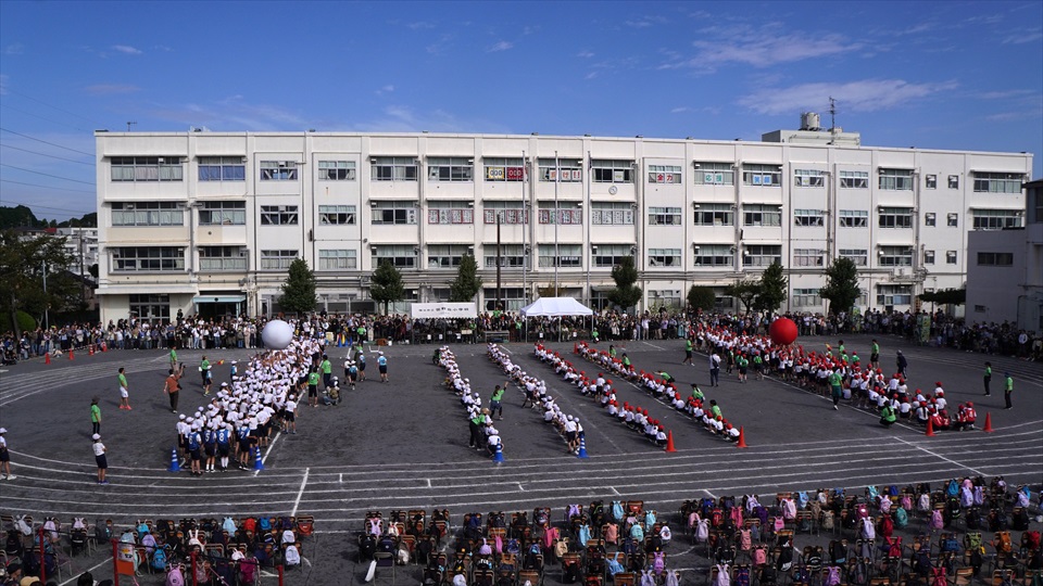 今年の笹小運動会スローガンは、「輝け! ~全力・応援・笑顔~」です。秋晴れのもと、今年も運動会を成功させるために学校全体で協力して、児童達が中心となり仲間と協力し合い、自主的な運動会を創り上げようとしていました。