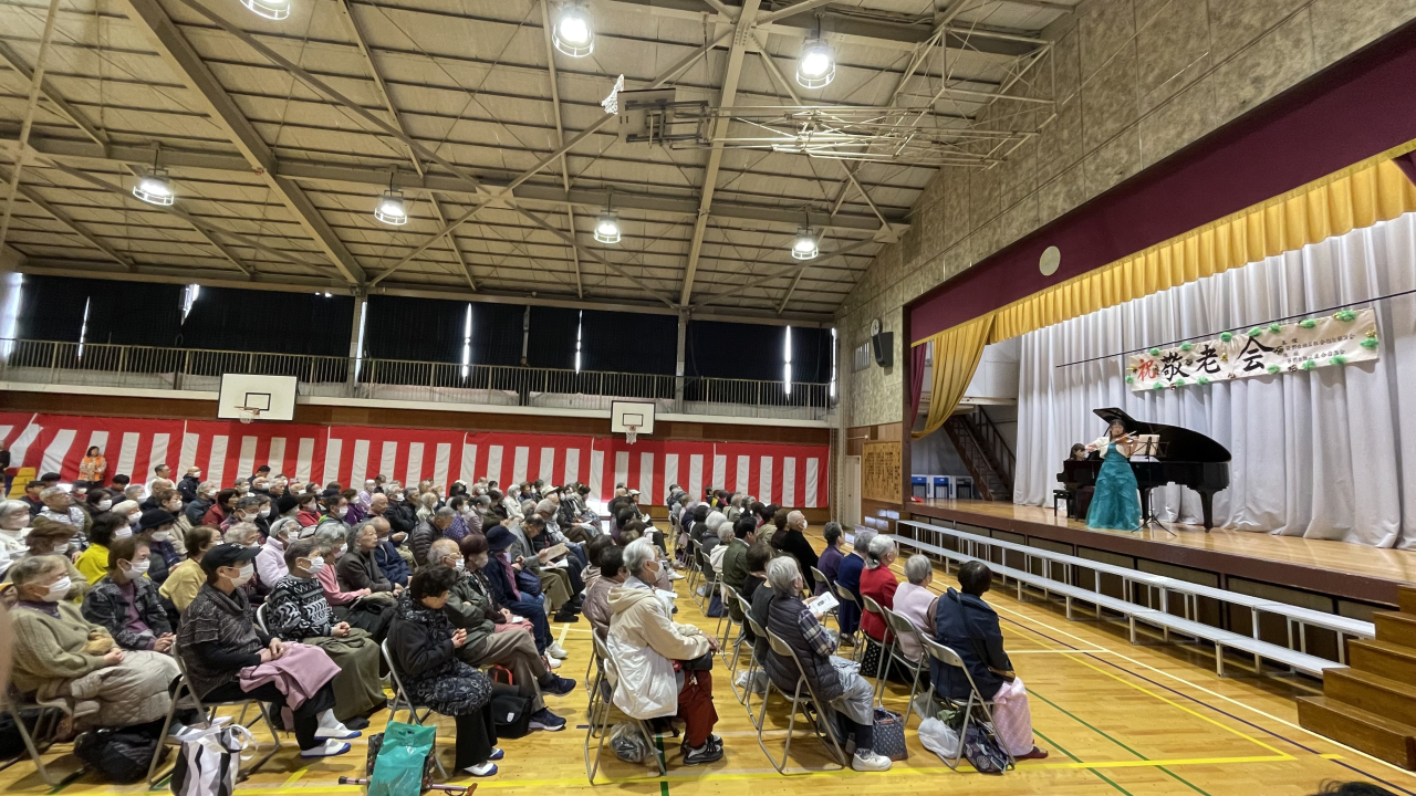 笹野台地区社会福祉協議会主催、笹野台地区連合自治会後援の「敬老会」が笹野台小学校体育館で開催されました。さわやかな秋晴れと期待していましたが、前夜からの雨が続き小雨となりました。151名の地域の皆さんをお招きし盛会でした。