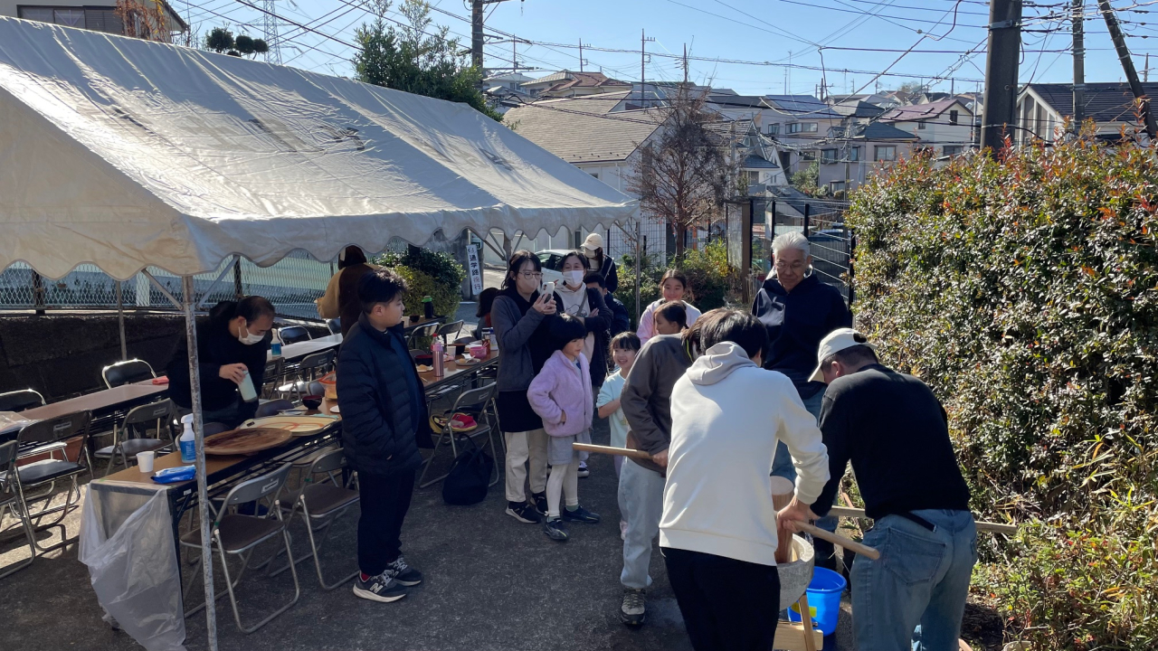 11月30日(日)、富士見ヶ丘自治会の餅つき大会を開催しました。 当日は爽やかな秋晴れに恵まれ、青空の下で久しぶりの賑わいが広がりました。コロナ禍前まではバザーを中心に、餅つきや豚汁の配布を行っていましたが、今回は5年ぶりの開催となり、バザーは行わず「餅つき」「豚汁」「輪投げ大会」を企画しました。もち米を蒸すところから丁寧に作った餅は大好評で、子供たちも普段なかなか体験できない餅つきを楽しみました。輪投げコーナーも参加した子供たちで賑わい、笑顔があふれるひとときとなりました。豚汁は「美味しい!」と高評価をいただき、心も体も温まる味わいに。今回は子供会を中心に参加がありましたが、一般のご家庭からの参加はやや少なめでした。それでも「次のイベントは何ですか?」と自治会の活動に興味を持ってくださる方もいて、今後の企画への期待が感じられました。また、久しぶりの開催ということもあり、役員一同もノウハウがなく、運営の流れを知る人がいない状態からのスタートでした。3ヶ月も前から下調べを重ね、食材の量や調理時間なども手探りで準備を進めましたが、「住民の皆様に楽しんでいただきたい」という思いで力を合わせ、無事に開催することができました。地域の皆さまに楽しんでいただけるよう、これからも工夫を凝らした催しを企画してまいります。