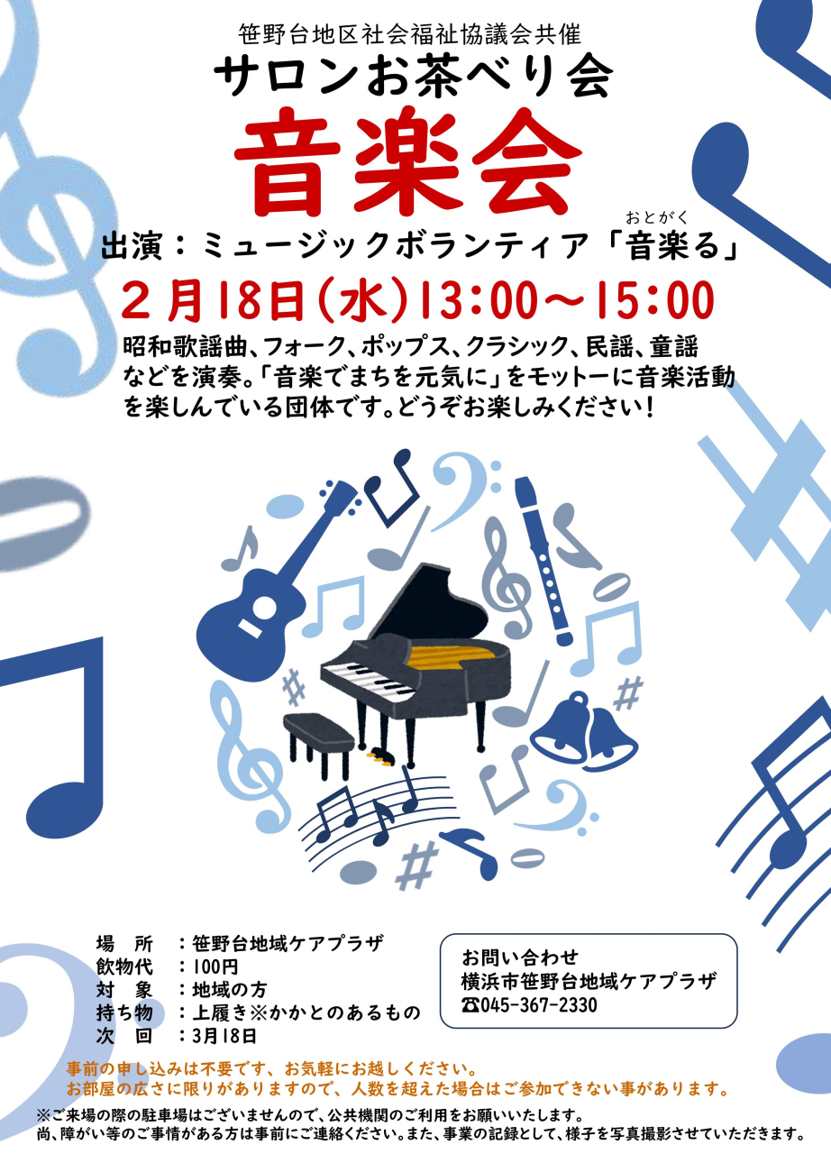 サロン『お茶べり会』は、毎月第3水曜日に笹野台地域ケアプラザに集まり、みんなでお茶を飲みながら、昔ばなしや世間ばなしに花を咲かせたり、情報交換や友達づくりの場として、また趣味や興味のあることにチャレンジをするなど、自由に使っていただく時間です。