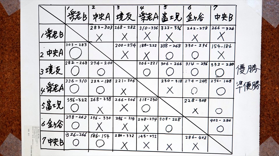 境友自治会の全勝優勝 準優勝 楽老Aチーム 第三位 中央Aチーム